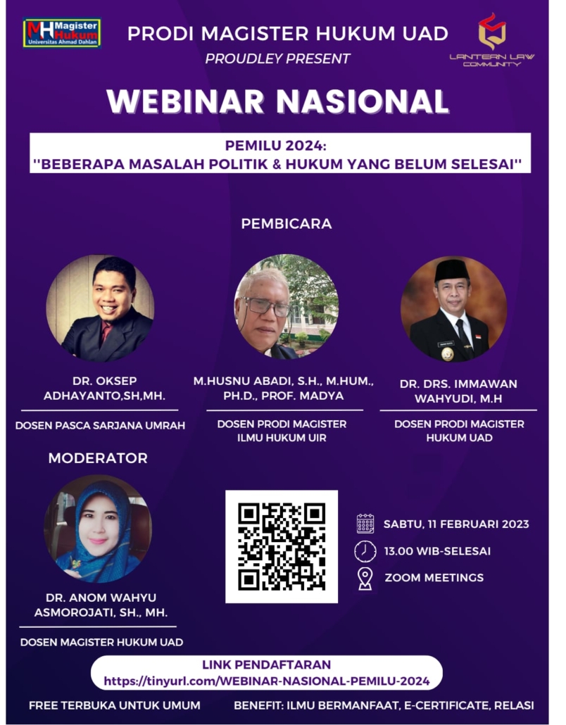 Webinar Internasional dengan tema “Konsep Hukum Modern Dalam Konteks Ke-Indonesiaan