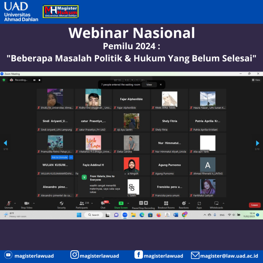 Sharing Session tentang Penguatan Minat Studi Lanjut S2 Hukum & Sosialisasi Prodi Magister Hukum UAD