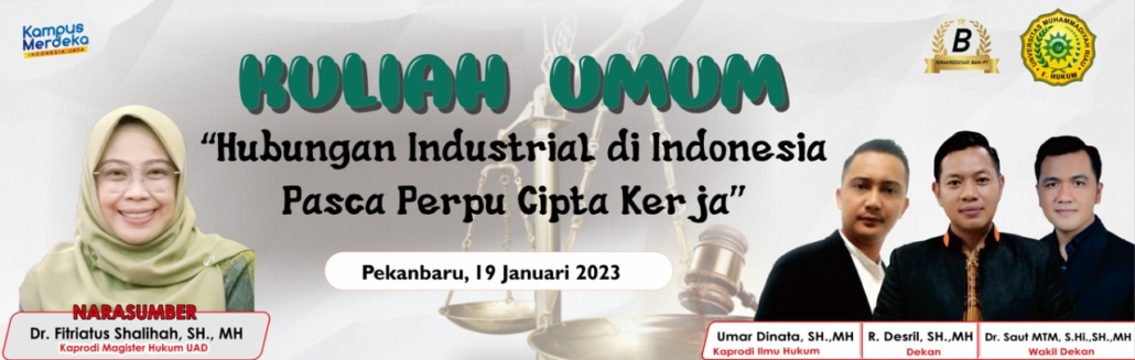 Dosen Tamu: Kuliah Umum dengan Tema “Hubungan Industrial di Indonesia Pasca Perpu Cipta Kerja” – 19 Januari 2023